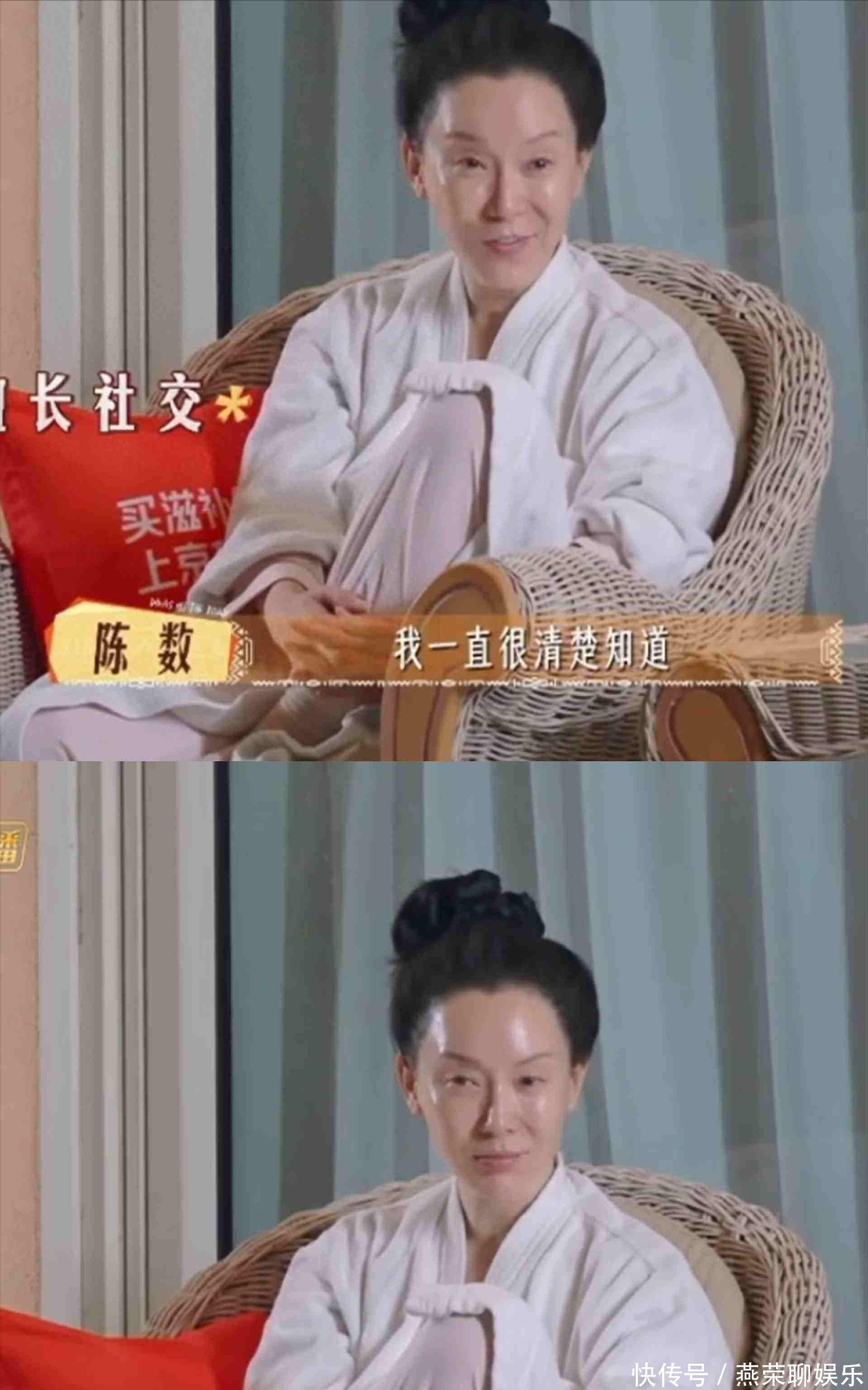 她的五官不算惊艳,但组合在一起很和谐,妆容加持下,更显端庄,可素颜的陈数,却让人难以和 “气质美女” 联系起来。在一档综艺里,陈数曾以素颜出镜,没有了妆容修饰,她的眼睛显得很小,面部线条也没了镜头前的精致感。